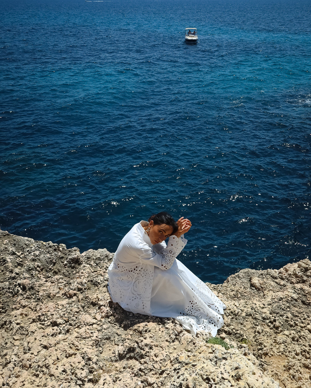 SIZING: Model wears size Small. Please check the size guide for measurements or email us if you are unsure of your size or have any questions regarding the design or fit.