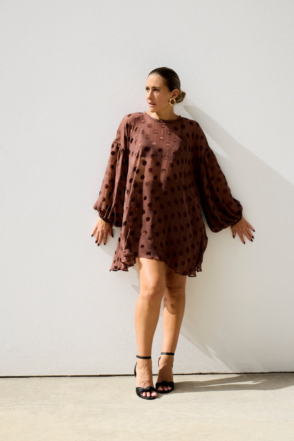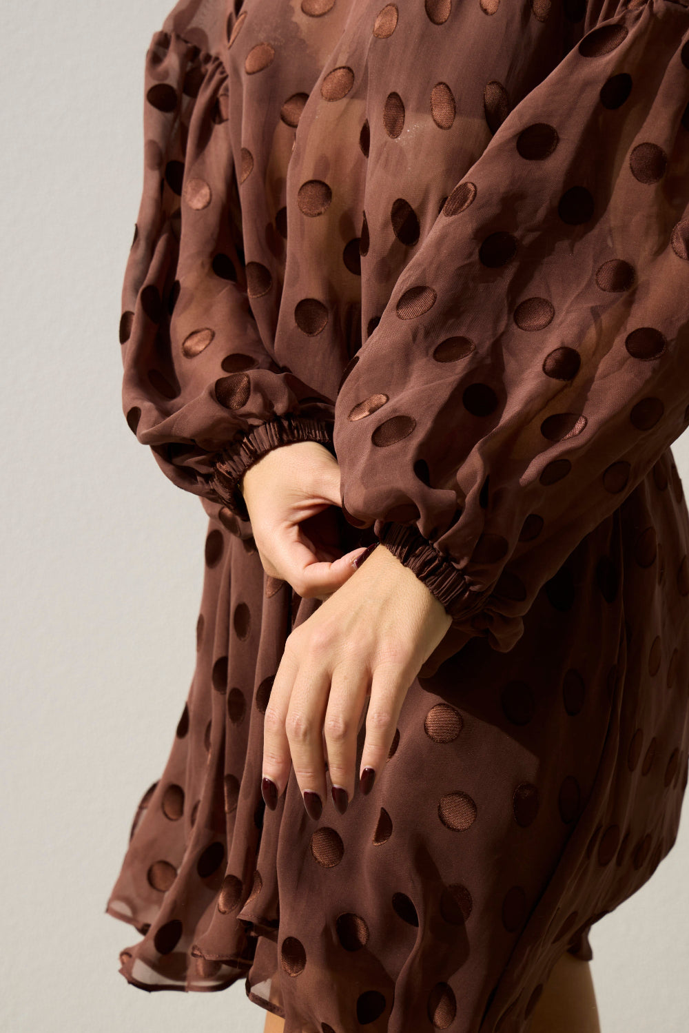 Chocolate - Sheer Spot Balloon Sleeve Blouse